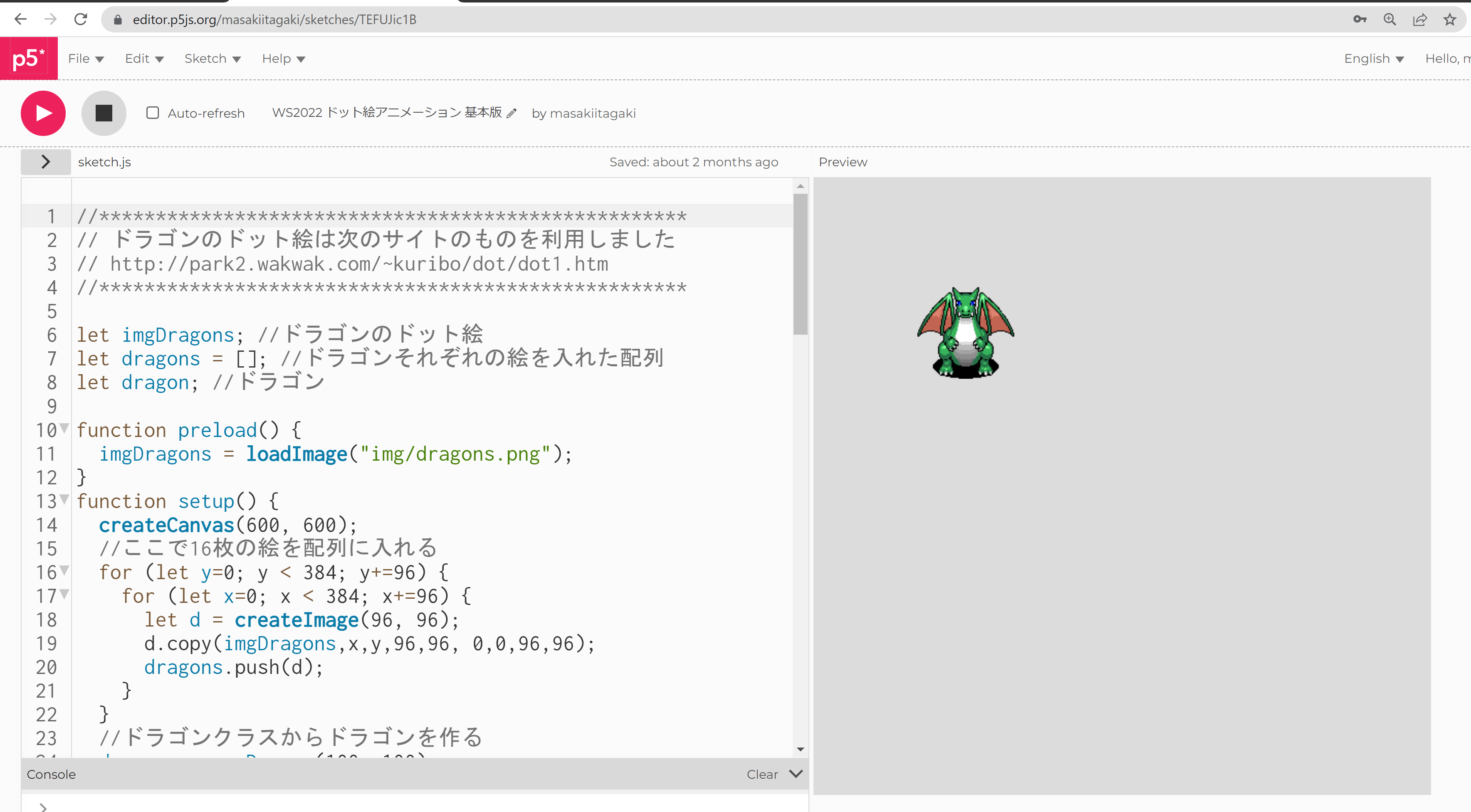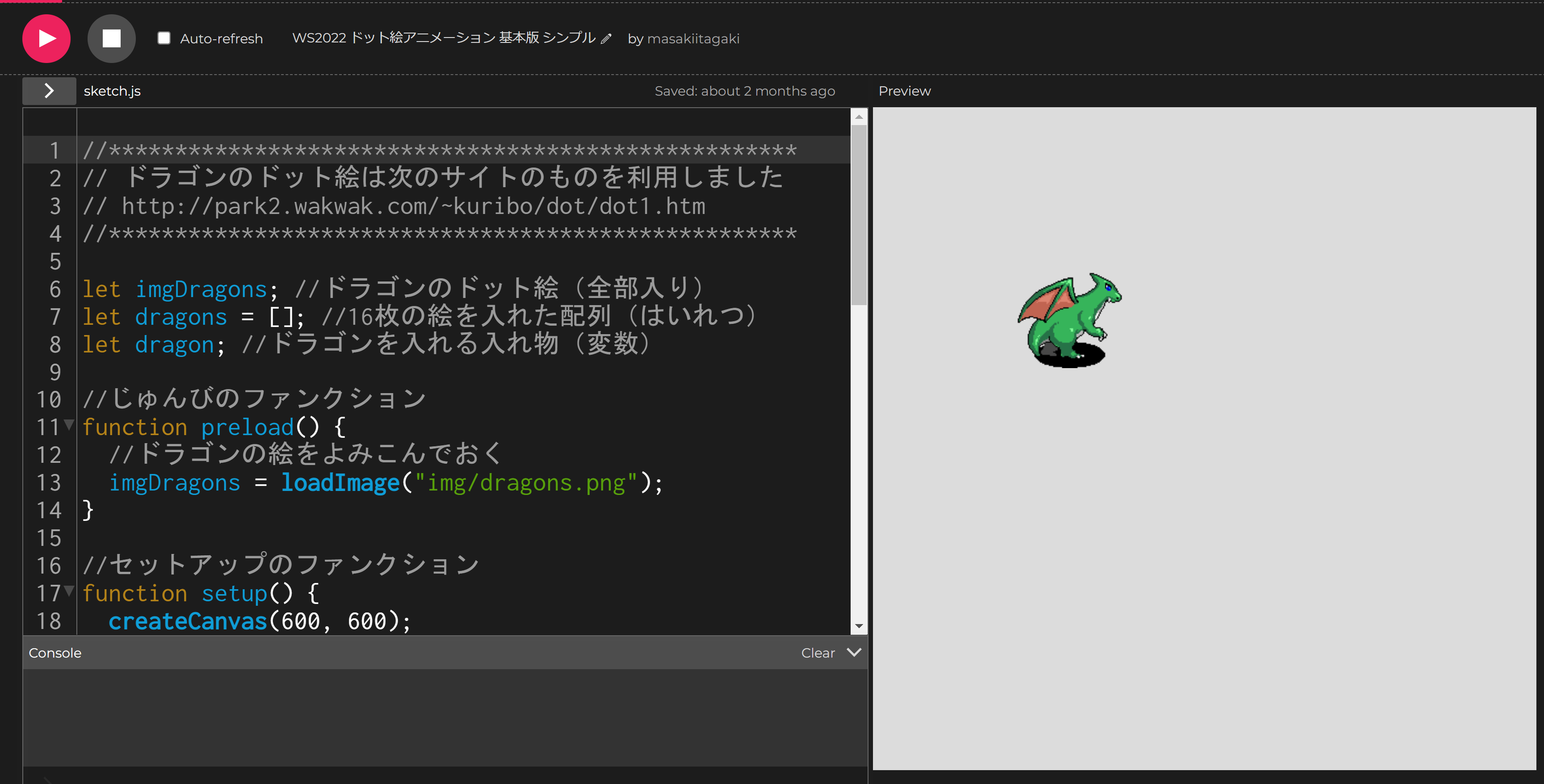 ✅ 矢印キーでドラゴンが動くプログラムを実行する