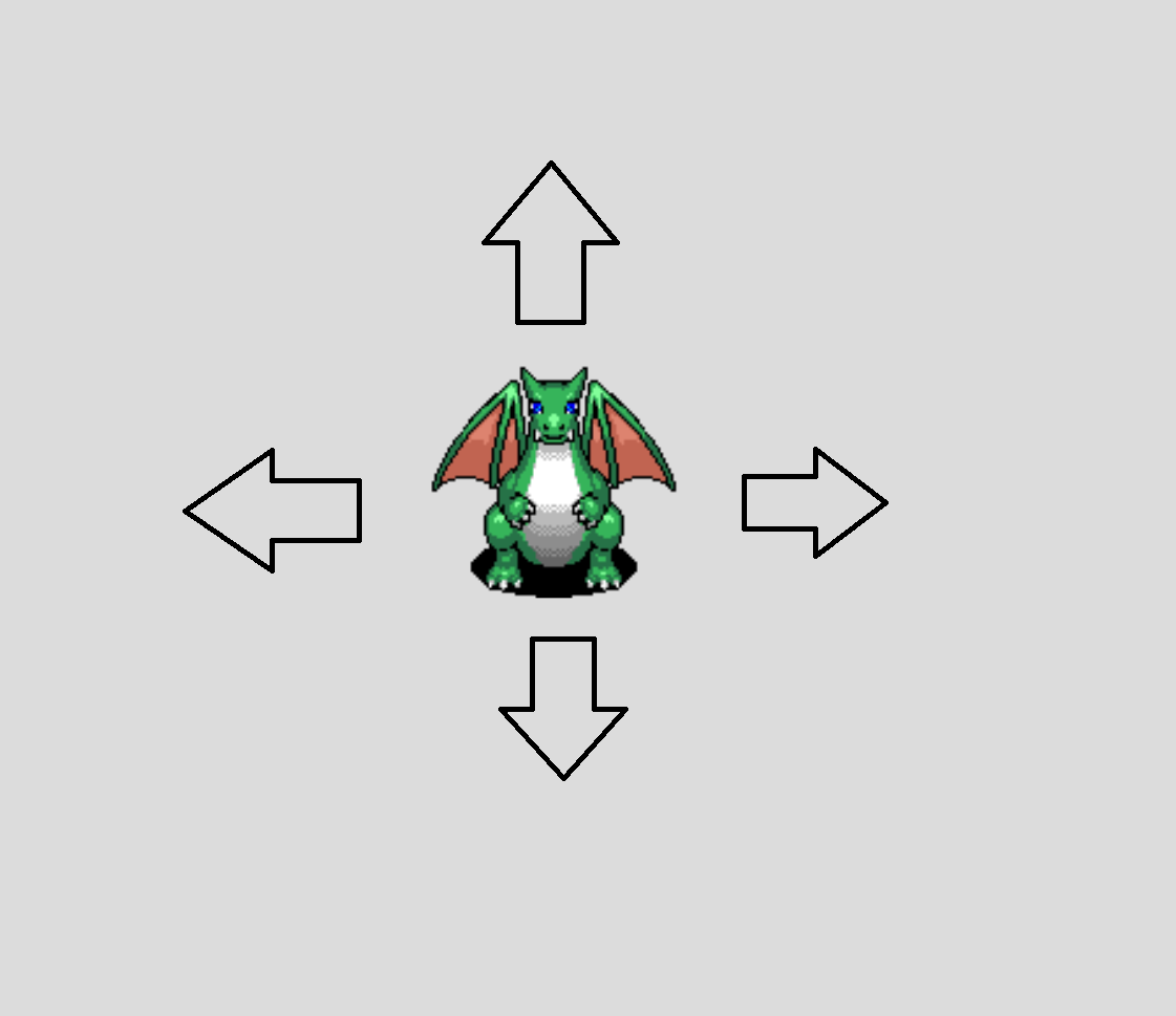 ❸ 矢印キーを押してドラゴンを動かしてみてください。