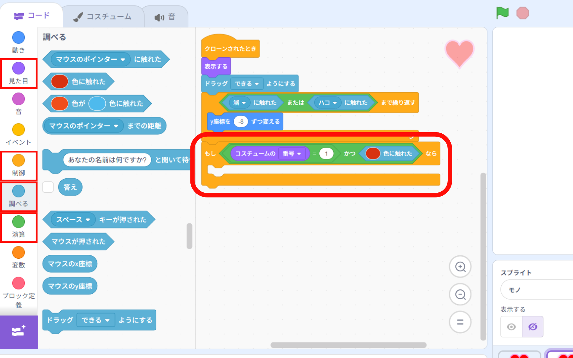 モノをハコにドラッグした時に、モノとハコが同じコスチュームかを確かめます