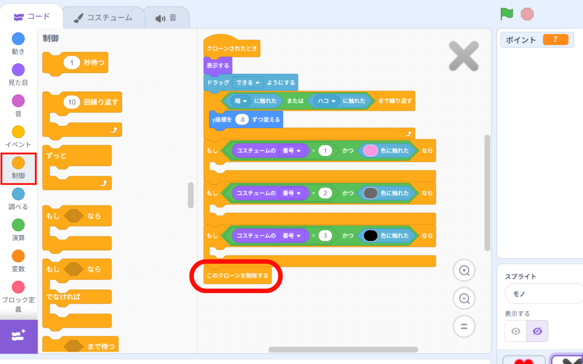 が終わったら、クローンが消されるようにします