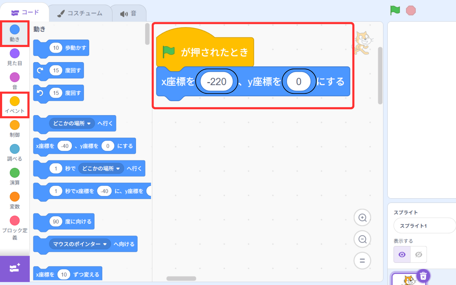 ※ブロックは、左側の同じ色の◯をクリックすると出てきます