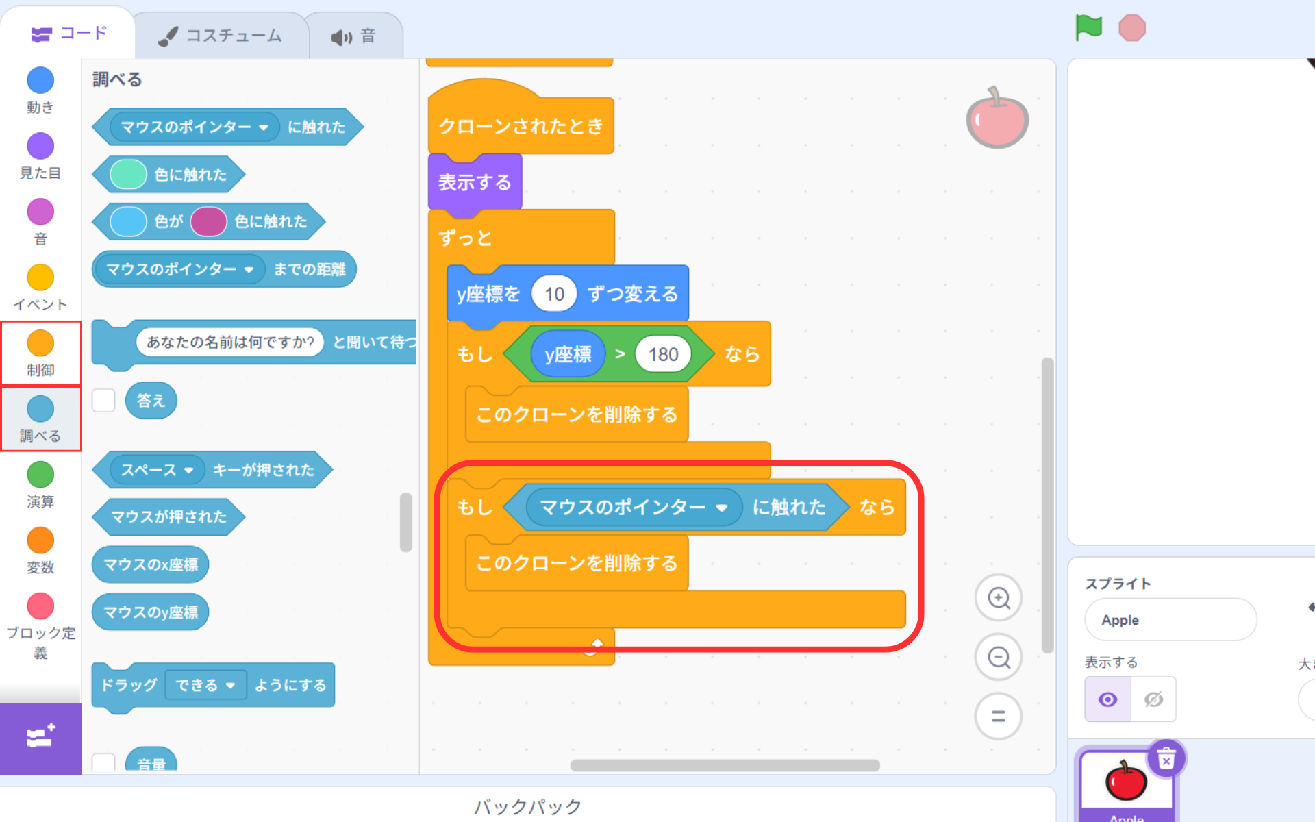 マウスのポインターでクローンが消される(カットされる)ようにします