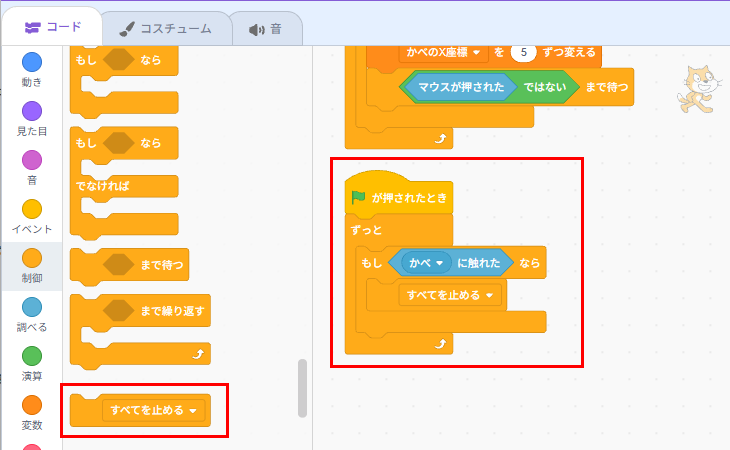 好きな終わり方でいいですが、ここでは制御のブロックですべてを止めています。