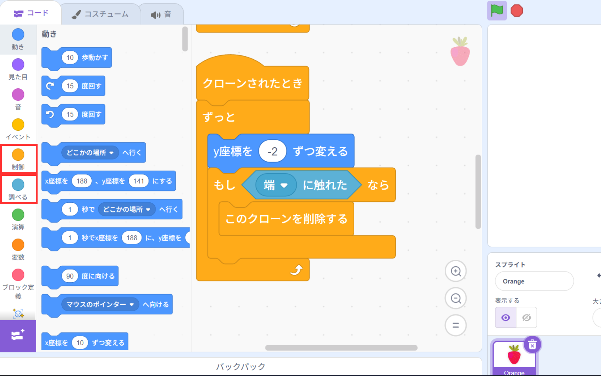 端についたらクローンを削除する