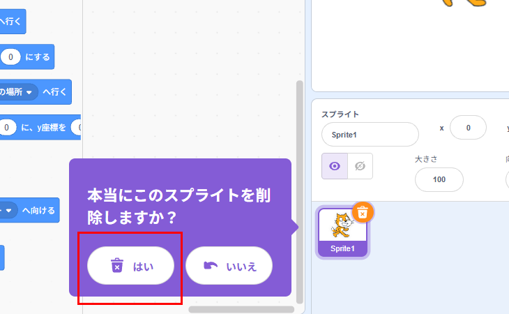 ネコのスプライトをけす