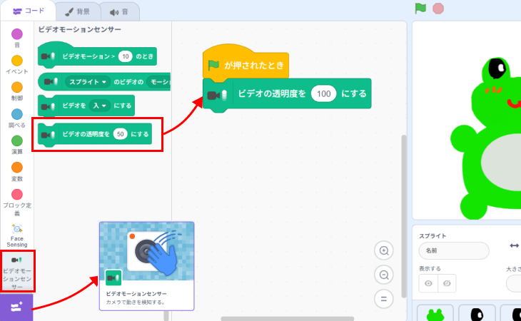 拡張機能からビデオモーションセンサーを追加して、